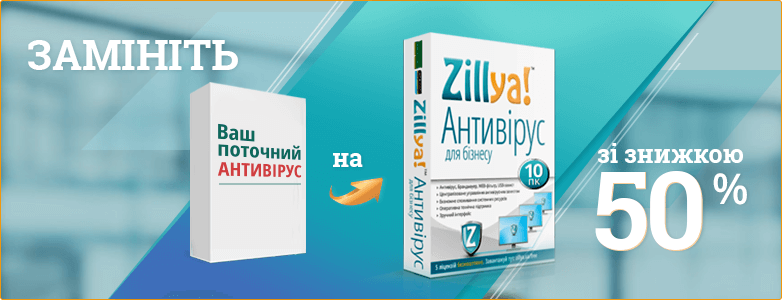 Програма міграції передбачає, що компанії, які користуються або користувалися не більше ніж рік тому платним антивірусним продуктом іноземного виробництва, мають змогу отримати знижку 50% на Zillya! Антивірус для Бізнесу.