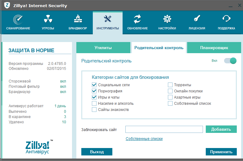 Кроме того, новая версия Zillya! Internet Security получила обновленный интерфейс.